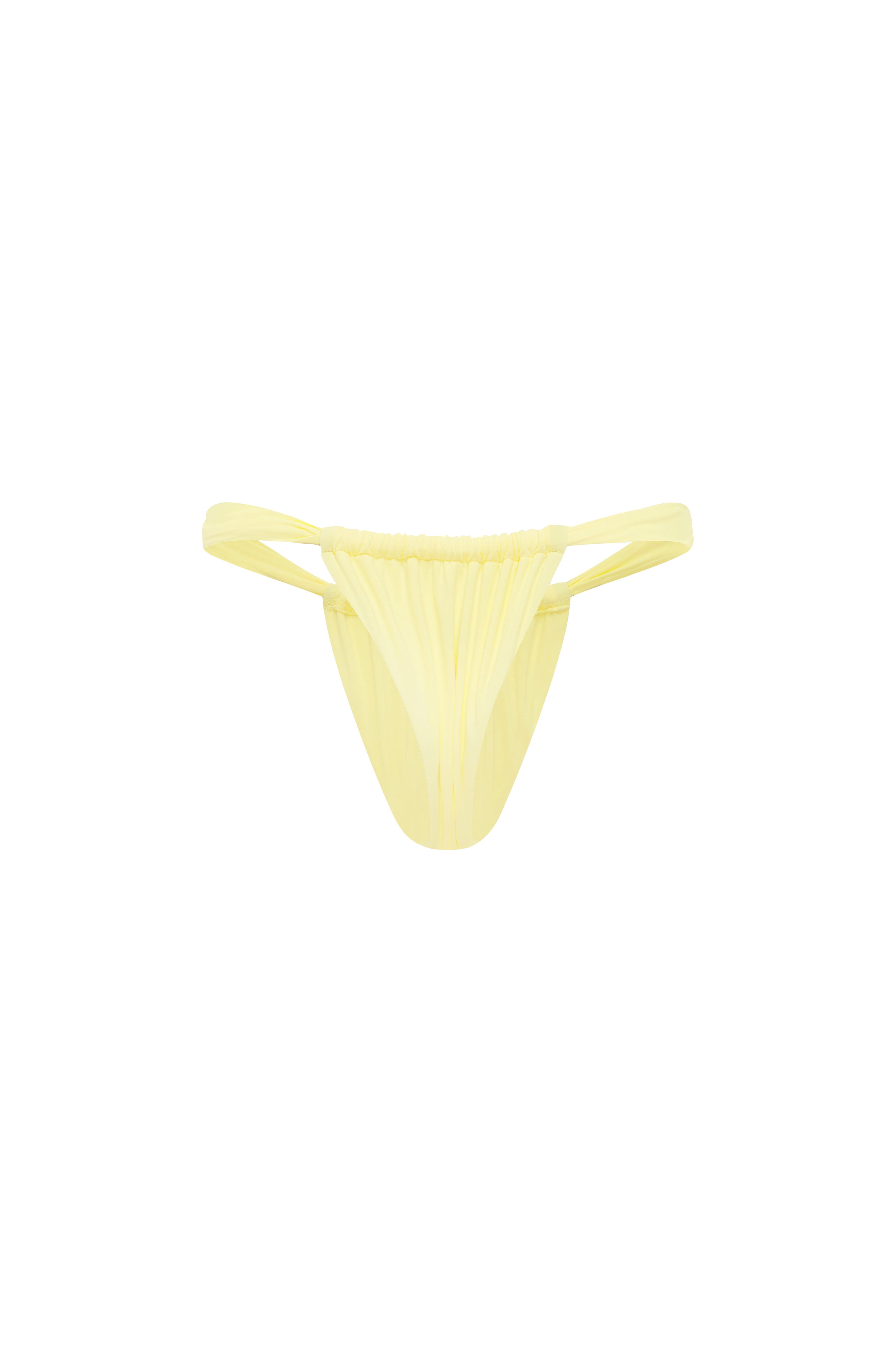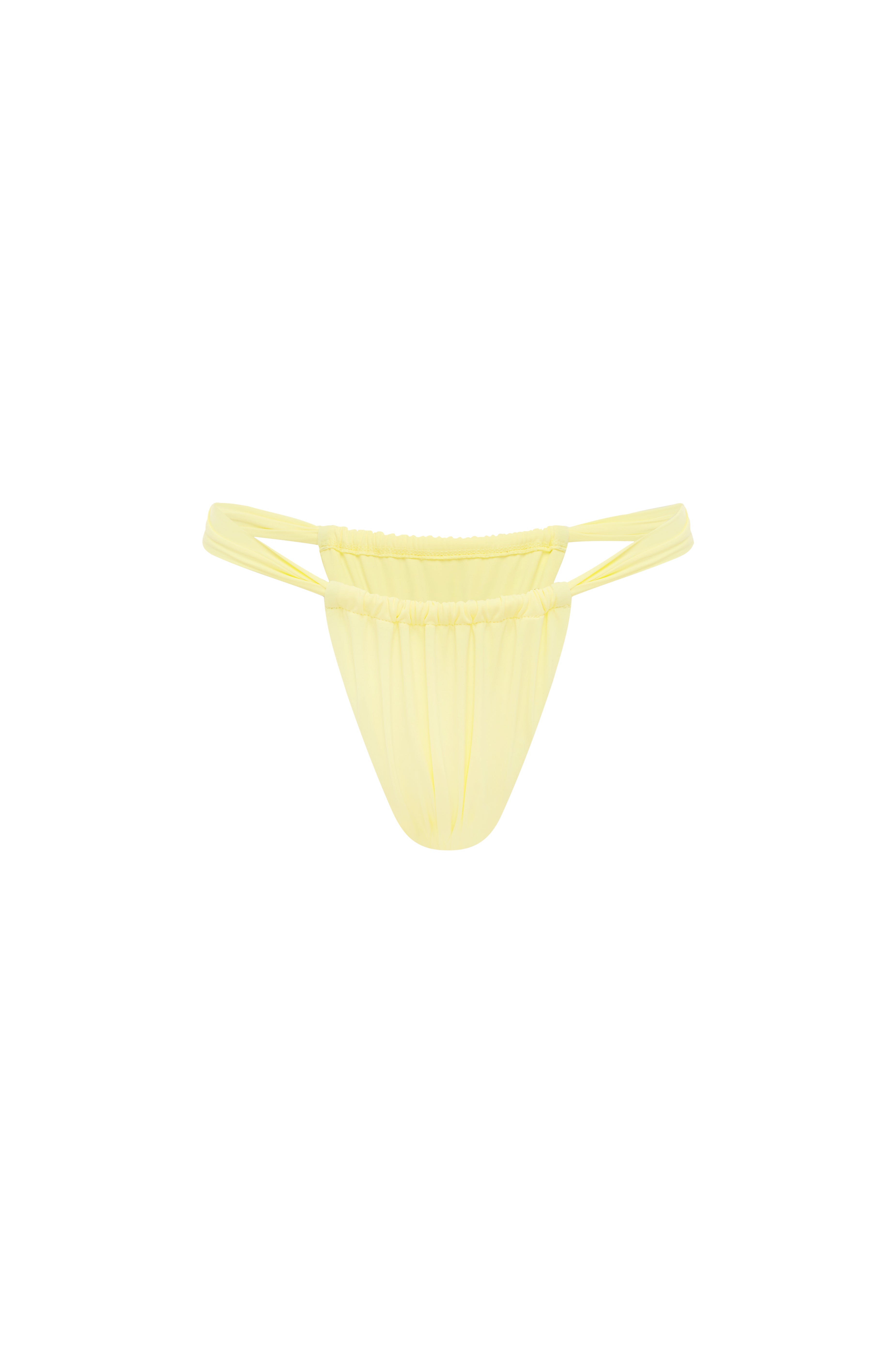 Thick strapped & on trend. The Mare Swim bottoms are back in Pastel Yellow — gathered & high cut, making them the ultimate body sculpter. Go cheeky with it or keep it covered with our adjustable coverage option.